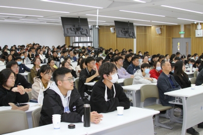 邹校长首先向在场学生介绍了南京外国语学校的历史沿革、办学理念、育人模式等基本情况,他指出,南外自成立以来,其为党育人、为国育才的初心不改,始终追求社会价值和人的价值的统一,鼓励学生全面发展、自由成长,成为更好的自己。同时他以南外开设的各类特色课程,如STEM+课程、博物馆课程等为例,强调当今的学校要注重培育具有全球化视野的、符合社会最新要求的人才。随后,邹校长借用著名教育家怀特海的过程教育哲学思想,呼吁教育工作者要用心灵去感应、孕育、温暖另一颗心灵,以此唤醒学生自由成长的潜能,并再次号召青年师范学子要全方位拓展自身能力,为未来走向工作岗位积淀足够的素质基础。
