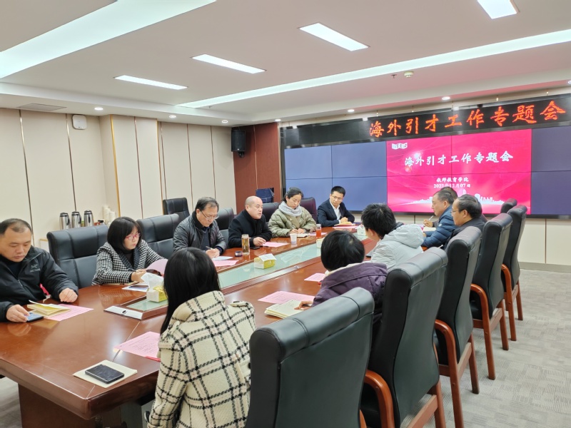 2022年12月7日下午,教师教育学院在揽江楼召开海外引才工作专题会,学校人才引进领导小组办公室副主任施威、学院全体院领导、部分具备海外教育经历的教师代表参加会议,会议由院长杨作东主持。