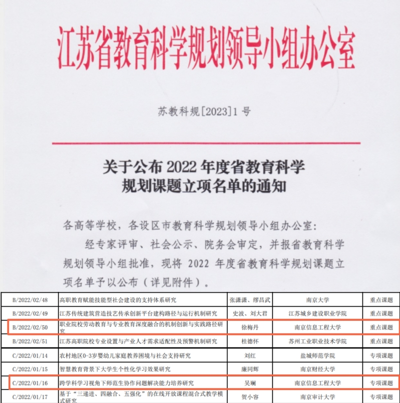 近日,江苏省教育科学规划领导小组办公室公布了2022年度江苏省教育科学规划课题立项名单,教师教育学院分别获批重点课题1项和专项课题1项。