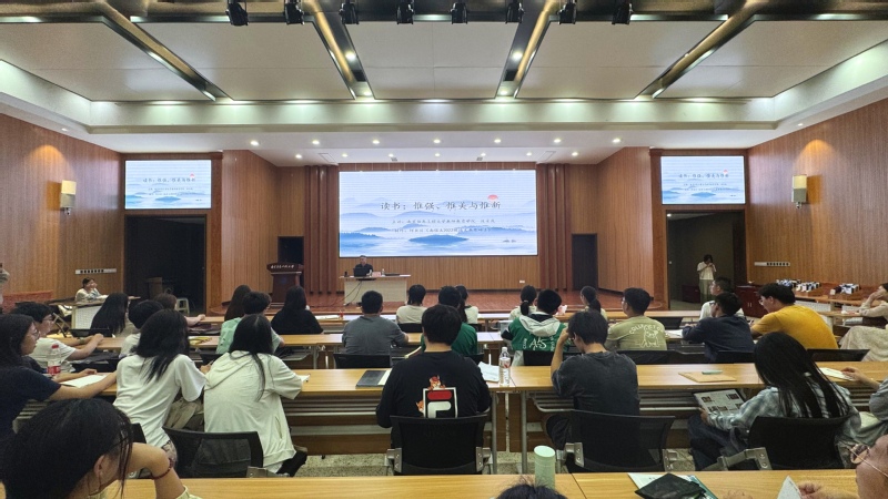汲安庆教授围绕“强、美、新”三大维度展开阐述。他指出,“强”易流于实用,如应试阅读,强调应通过多读、细读尤其是学科史阅读夯实基础,避免功利化倾向;“强”亦关乎多层次的“用”,需在阅读中沉淀,并通过实践转化提升能力。“美”是内在需求,涵盖学科、生活与生命之美,应打破“用”对“美”的遮蔽,统筹科学与审美、感性与理性,强化审美素养培养。汲安庆教授强调“新”源于自我实现与创新信念,鼓励学生保持生命与知识的融合,多读经典、勤于自省、借力超越、持续自我更新。此外,他还分享了“五环读书法”,倡导通过文学、哲学、教育学、文化学及兴趣阅读拓宽视野、深化认知。讲座尾声,学生积极提问并交流读书感悟,汲教授热情为学生答疑解惑。