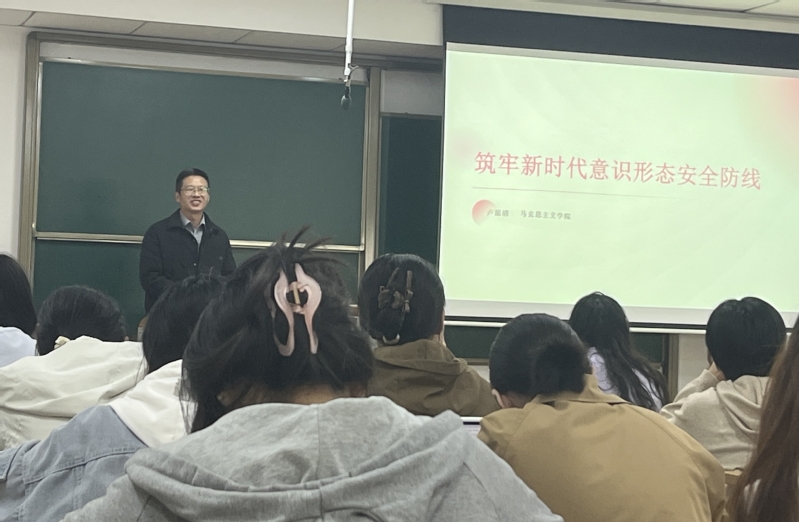 他指出,意识形态安全是国家安全的重要组成部分,习近平总书记对此做了一系列重要论述,同学们要牢牢把握,认真领悟。党的十八大以来,全党全国各族人民文化自信明显增强,全社会凝聚力和向心力极大提升。同时,当前意识形态领域依然面临不少风险挑战。他系统介绍了当前意识形态领域的新形势与新威胁,强调面对意识形态领域的新挑战,广大党员发展对象必须增强政治敏感性和政治鉴别力,坚定马克思主义信仰,牢固树立“四个意识”,坚定“四个自信”,坚决做到“两个维护”;要自觉抵制各种错误思潮和有害信息的侵蚀,筑牢新时代意识形态安全防线。