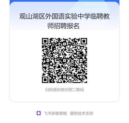 2.报名方式,搜索微信公众号【观山湖区外国语实验中学】主页-【临聘教师】栏目报名,或扫描下方二维码报名: