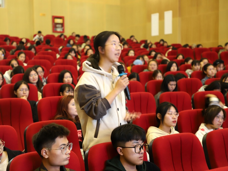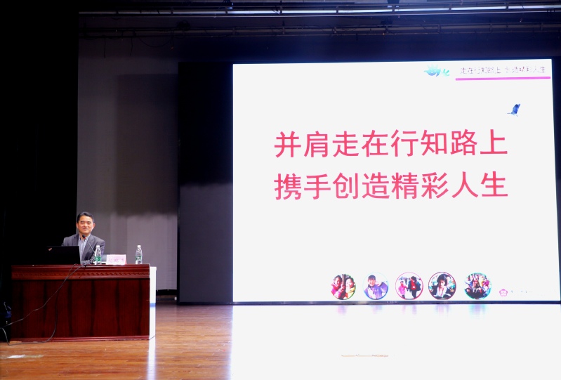 讲座开始,杨瑞清校长以一段名为《温度·一片小树林》的短片开场,向大家介绍了自己扎根乡土、放眼全球,一心一意为农民做教育的办学理想。杨校长通过“了解一个人、认得一个字、欣赏一朵花、拥抱两个娃”四个部分,讲述了我国著名教育家陶行知先生为教育事业奋斗一生的伟大事迹,以及他自身从教近四十年来为不断追求“知行合一”所做的努力。杨校长指出,教育是与生俱来、与生同去的,生活是最伟大的老师。他以自己在学校中打造的荷花园为例,生动形象地阐释了“关怀生命、关注成长、关切生机、关心生态”的行知教育理念,倡导教育工作者要始终树立终身学习、学以致用的观念,通过对行知理念的持续践行,引导每一个学生全面成才。讲座结尾,杨校长在与同学们的互动交流中再次强调,对教育工作者来说,做人是最根本的教育、奉献是最有力的行动,唯有坚持方能收获累累硕果。他呼吁在场师范生们要勇于坚守、躬身实践,立志成为新时代的大国良师。