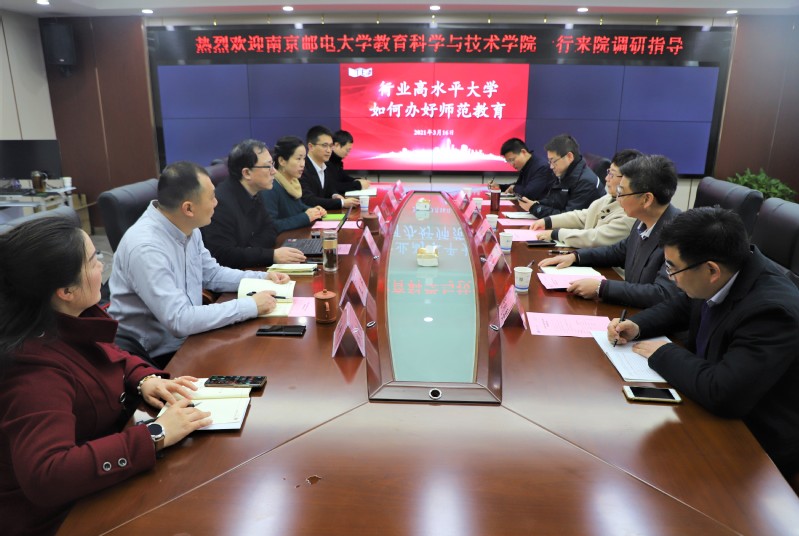 3月16日上午,南京邮电大学教育科学与技术学院党总支书记彭洋、院长刘峰一行5人来我院调研交流。教师教育学院院长杨作东、院党总支书记李霞携学院领导班子及学院相关负责人进行座谈,座谈会由李霞主持。
