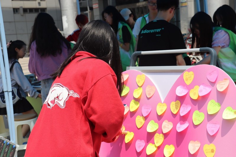 留笑瞬间、记录足迹、自我激励、星语心愿、爱心刮画……丰富有趣的互动、欢乐轻松的氛围,近日,教师教育学院在西苑新食堂前开展了“自由花”心理健康主题教育活动。此次活动由教师院“自由花”青年志愿者协会主办,吸引了全校500余名学生参与其中。