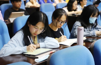 本次训练营课程共计60个学时,授课内容围绕中学教师资格证考试笔试相关内容展开。教师院副教授陈罡立足教资考试科目《综合素质》,向营员们介绍了职业理念、教育法律法规、教师职业道德、文化素养、教师基本能力等主要考察模块,并解读了教育观、学生观、教师观等重点概念的内涵,引导大家树立正确的职业理念,严格遵守教师职业行为规范。教师院副教授刘铭、黄颀两位老师则分别从教育学和心理学的视角出发,为营员们带来《教育知识与能力》相关内容的讲解。刘老师针对教育基础知识和基本原理,以及中学课程与教学相关概念,为大家全面梳理了教育学的关键知识点与基本研究方法。黄老师围绕认知过程、学习理论、发展心理、心理辅导等方面,带领营员们体悟心理学知识在教学实践中所发挥的作用。