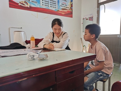 7月19日上午八点,“春霖”支教团正式开始上课。诗词欣赏、趣味数学、乐动英语、绘画手工、红色古诗……学生们被各式各样的课堂吸引,逐渐从陌生感中走出,积极举手回答问题,课间兴奋地围着老师们进行交流。“老师为什么要端正写字姿势?”“老师什么时候上画画课呢?”“老师你再读一遍古诗给我听吧。”在学生们一声声急切的询问中,支教成员感受到乡村儿童需要“爱的教育”也需要“爱的陪伴”。