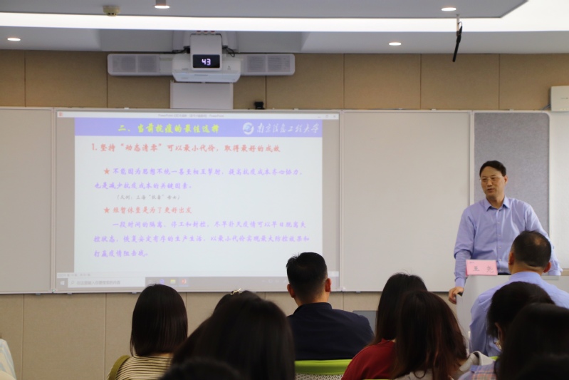 王尧以《坚守才能胜利》为题做报告。他从“如何理解动态清零”“当前抗疫的最佳选择”“万众一心南信大必赢”三个方面深刻阐释了动态清零含义、动态清零的条件和动态清零的主要措施,阐述了我国坚持“动态清零”的必要性、科学性以及中国政府“人民至上、生命至上”的防疫理念,解读了学校在疫情防控时期以广大师生安全为首位的工作理念以及高校实行封闭管理的必要性,以生动事例讲述了我校广大师生勇于奉献、英勇抗疫,党旗飘在一线、堡垒铸在一线、党员冲在一线的先进事迹。最后,他鼓励同学们要安心学习、勇敢坚毅、乐观向上、自律自强,愉快度过校园封闭式管理期间的学习、生活。