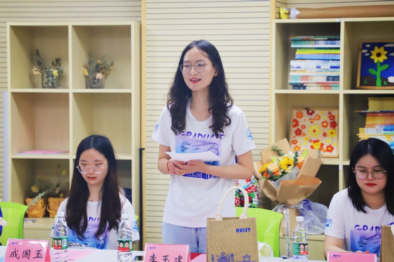 仪式中,2022届硕士研究生代表首先向导师鲜花,感谢导师在学术上的悉心指导和生活上的时刻关心。随后,李霞书记代表学院向毕业研究生赠送纪念品。毕业生代表李玉建在发言中回顾了在教师教育学院努力求学的两年时光,感谢学院多元包容的培养环境给予她充足的成长,在提升个人价值的同时也收获了值得一生感谢的良师挚友。教师院俞宏毓副教授作为导师代表向同学们送上了最后的叮嘱与美好的祝福。