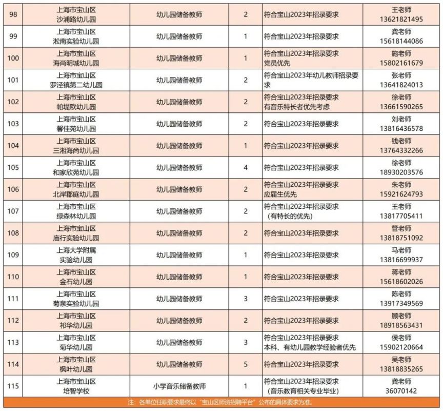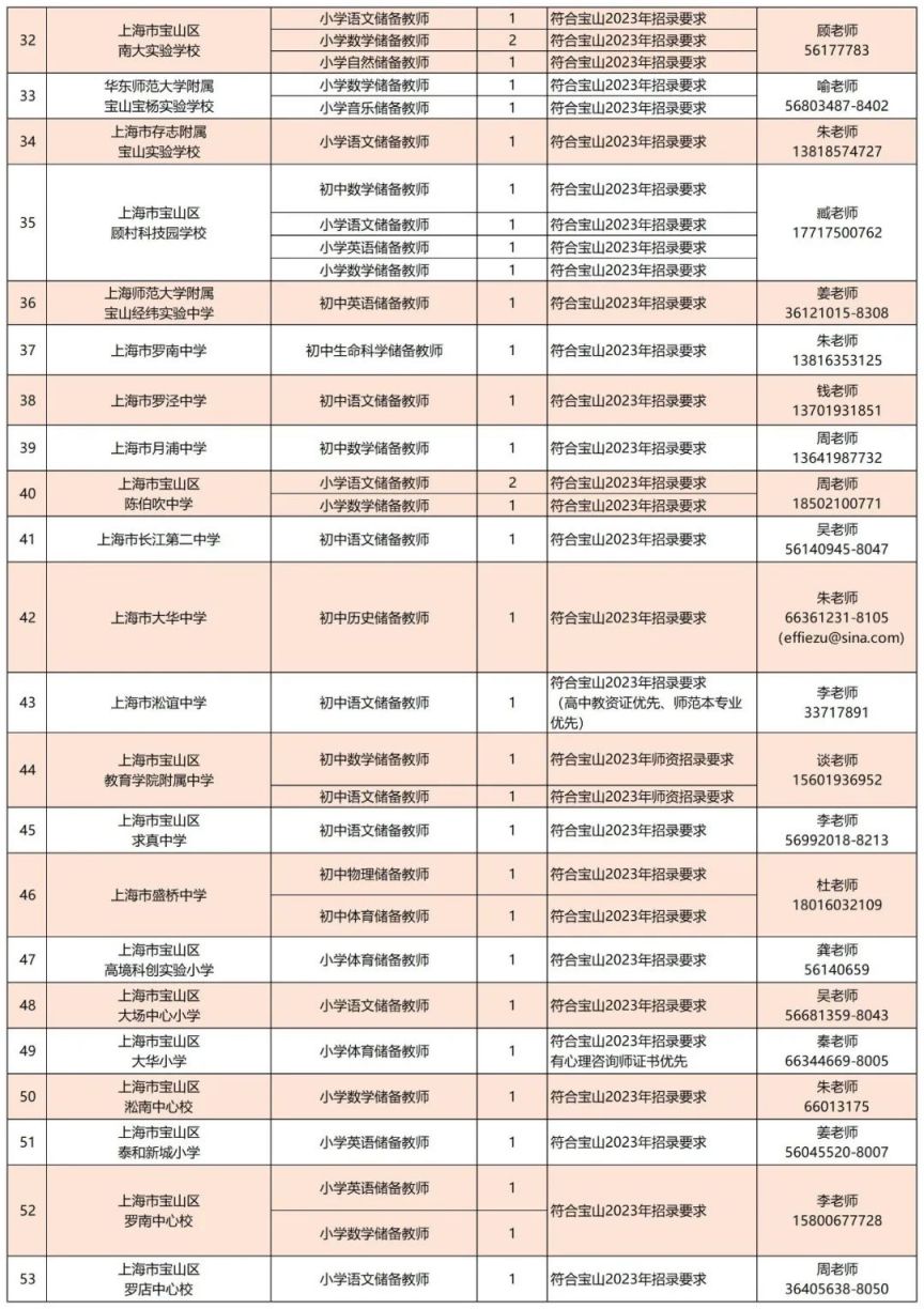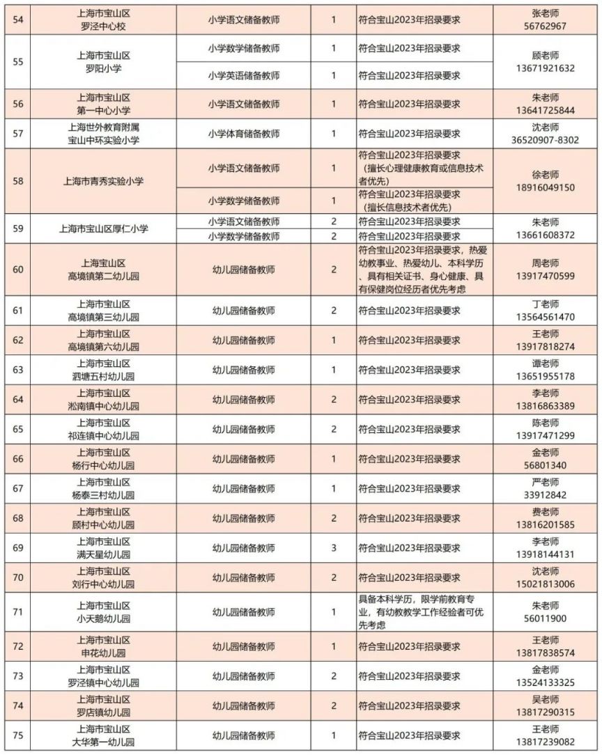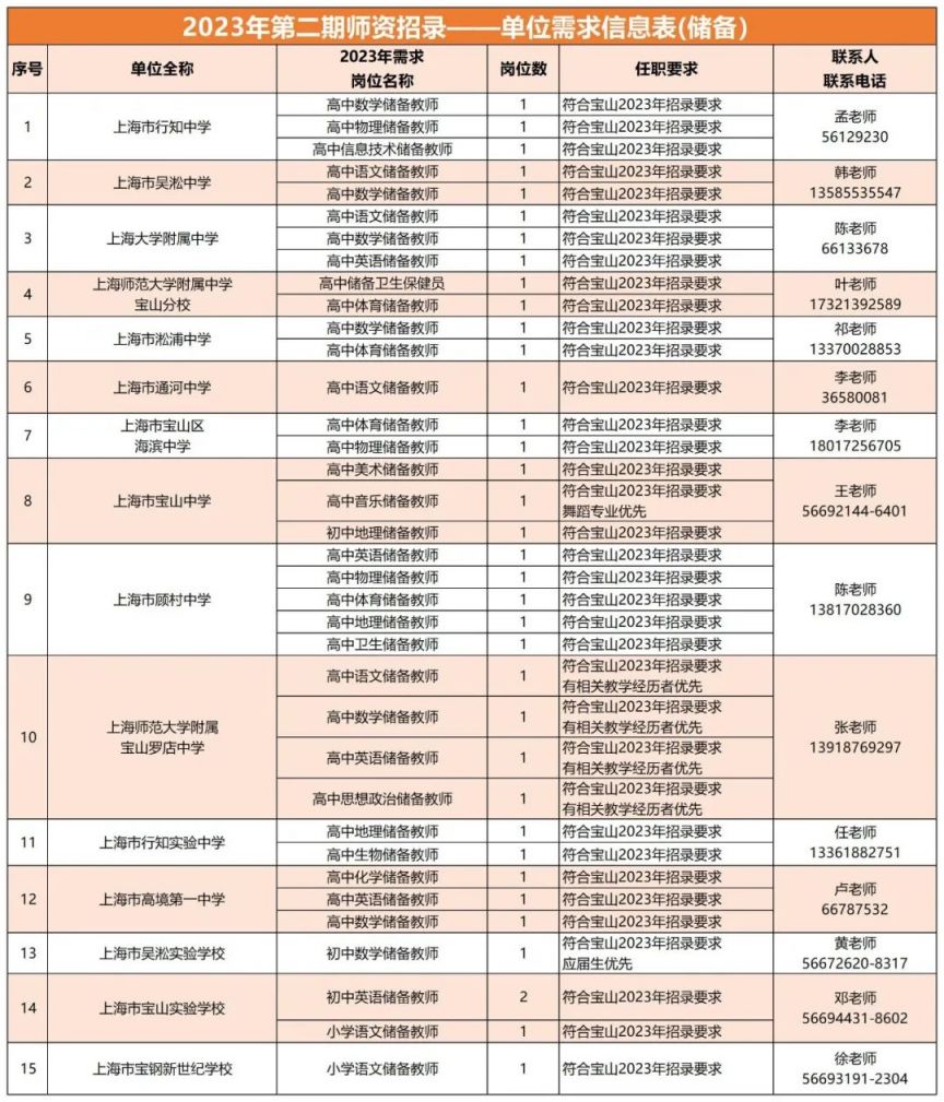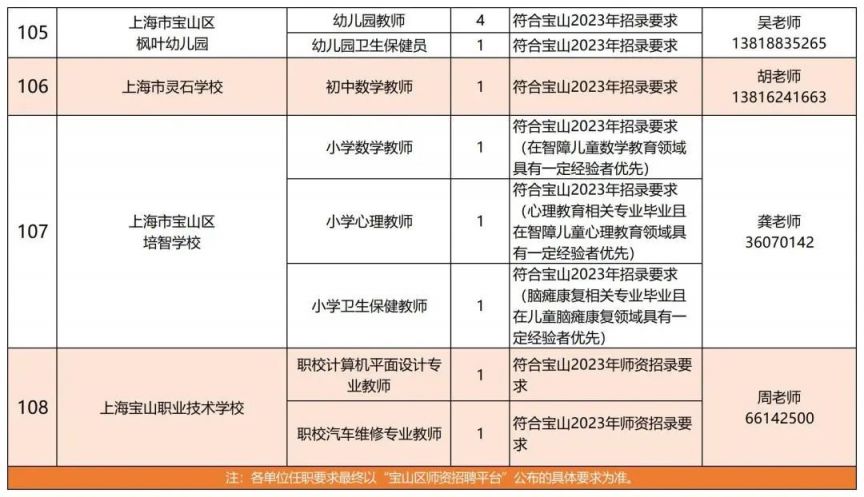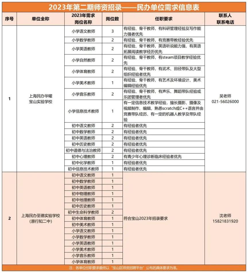 ※ 各单位任职要求最终以“宝山区师资招聘平台”公布的具体要求为准。