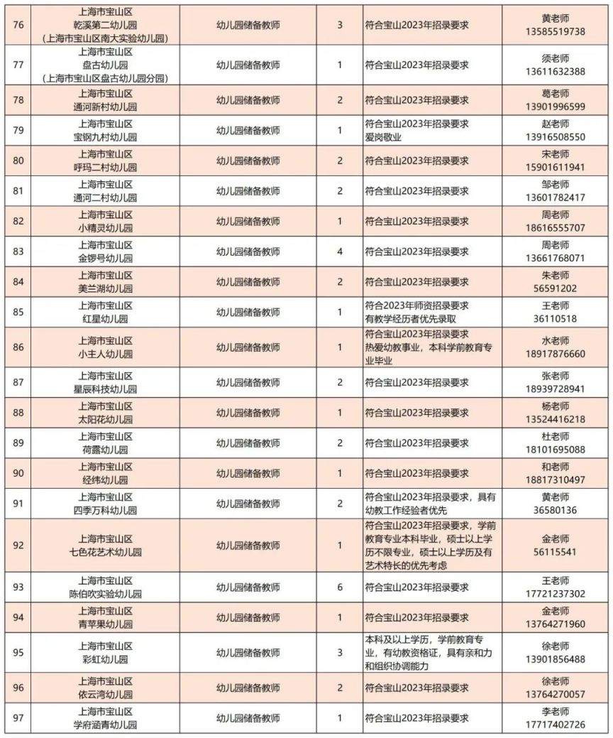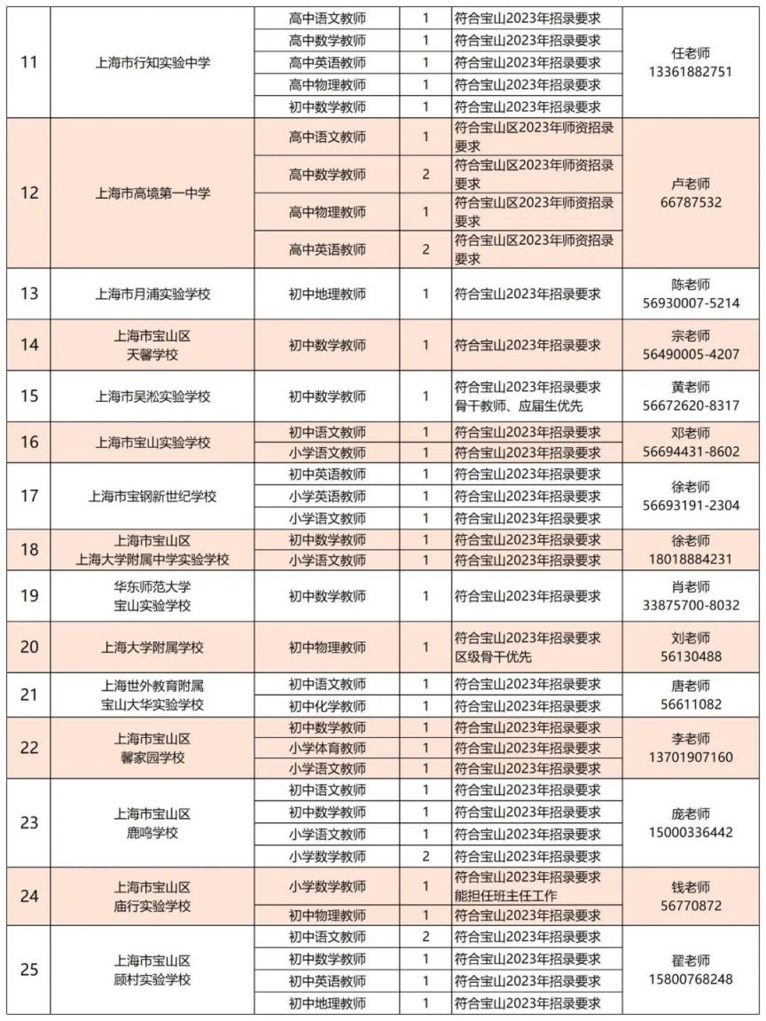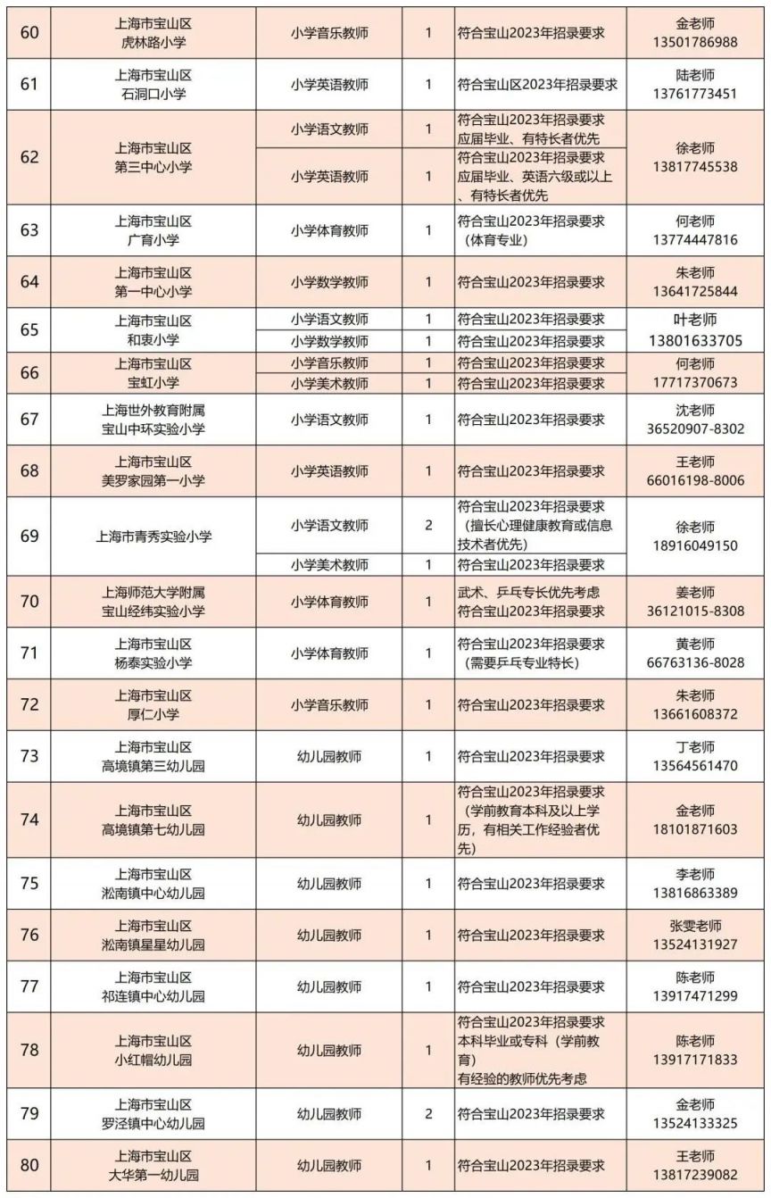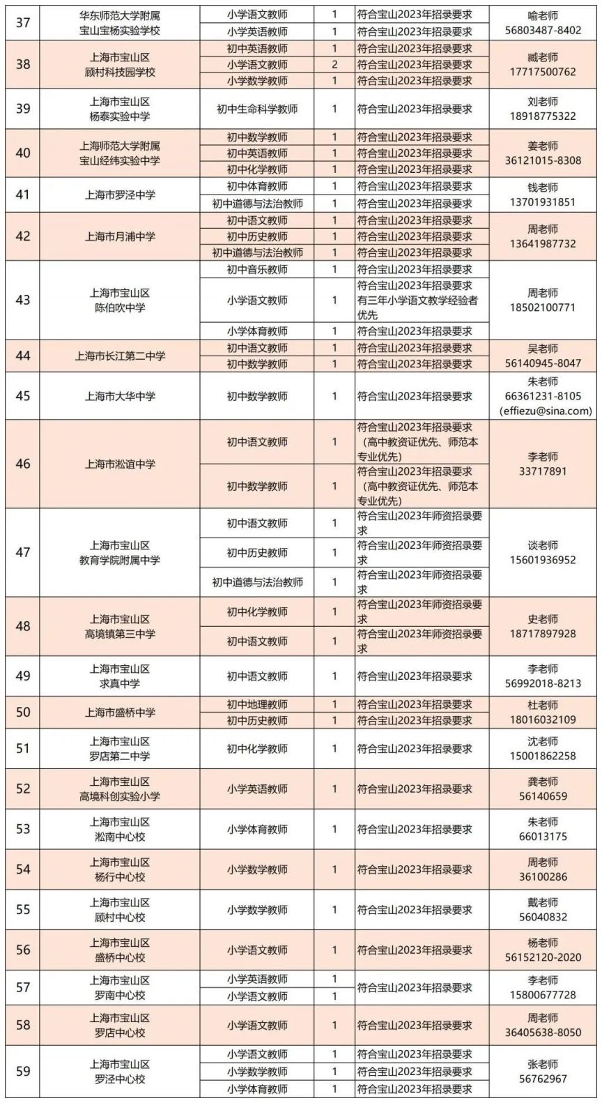 ※ 各单位任职要求最终以“宝山区师资招聘平台”公布的具体要求为准。