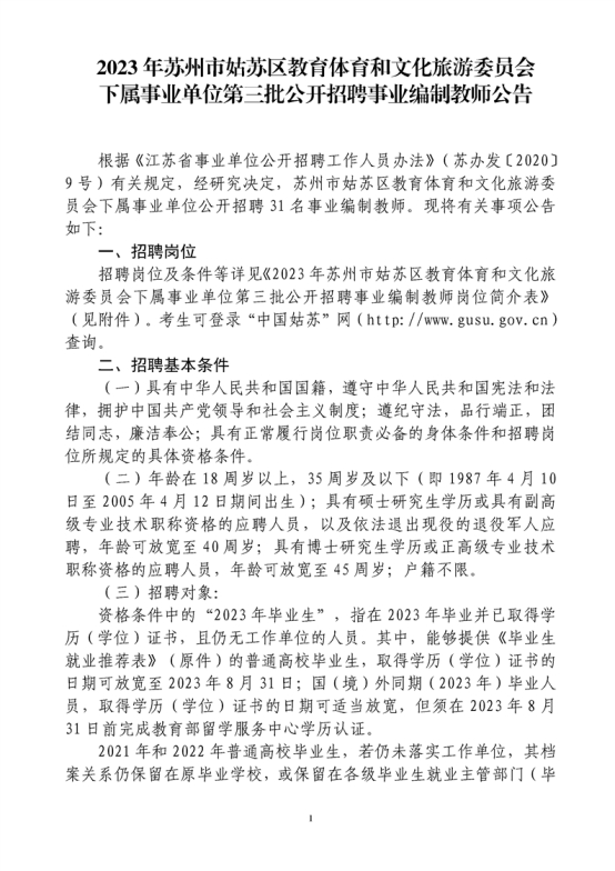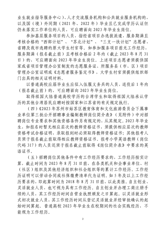 附件:2023年江苏省苏州市姑苏区教体文旅委公开招聘第三批事业编制教师岗位简介表.xls
