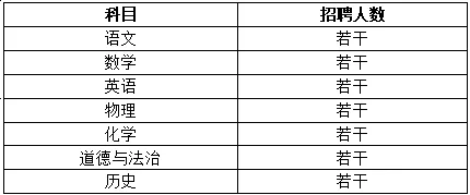 招聘初中语文、数学、英语、物理、化学、道德与法治、历史教师。
